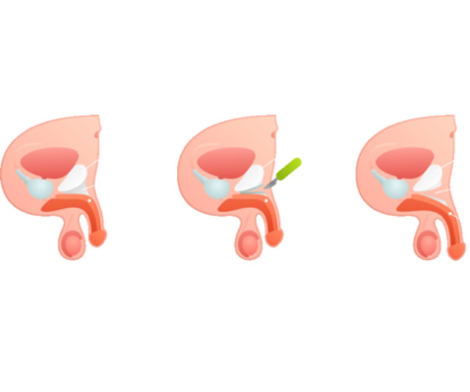 Da bi povečali dolžino, bomo nad bazo penisa naredili rez v obliki črke V. S tem lahko sprostimo suspenzorno vez penisa in tako omogočimo, da se penis pomakne naprej, s čimer se podaljša običajno za 2-5 cm. Postopek pusti majhno, a trajno brazgotino, oblikovano kot obrnjen "Y", v sramnem predelu. Brazgotino pa sramne dlake običajno zakrijejo.