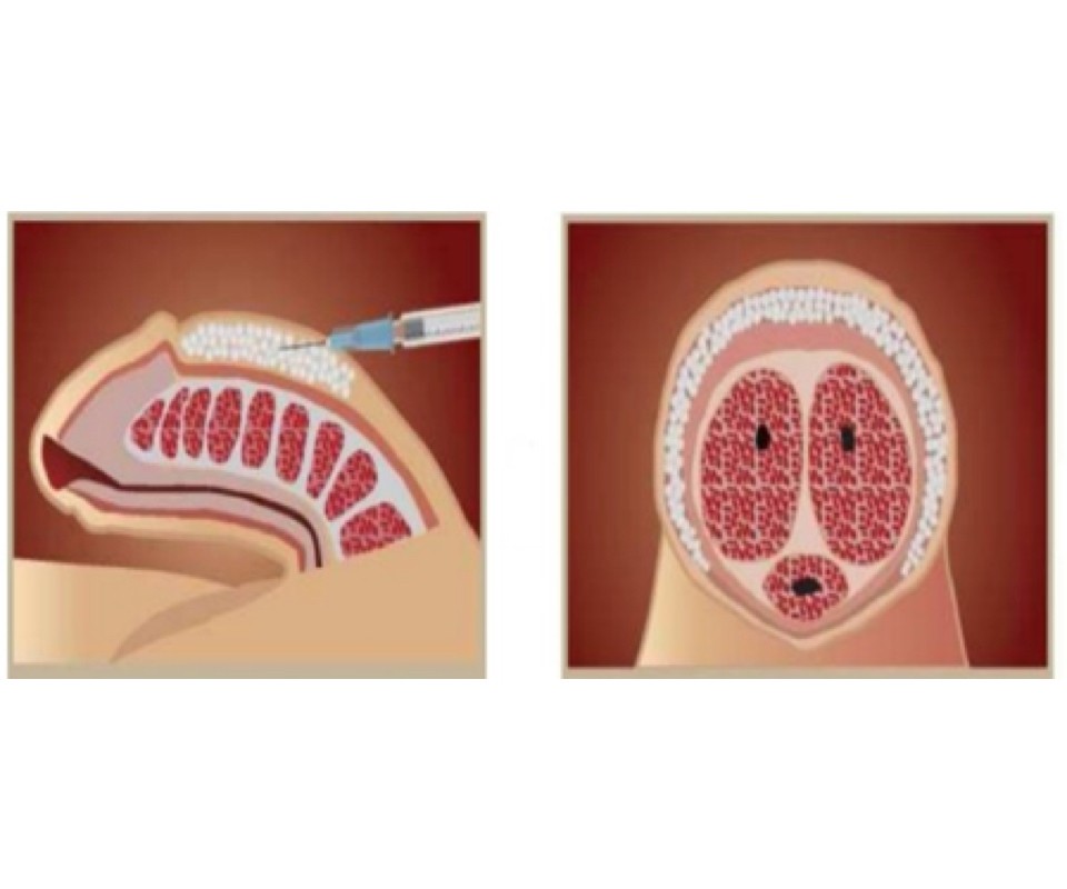 Povečanje obsega vključuje majhno liposukcijo na spodnjem delu trebuha ali stegen za pridobitev maščobe, čemur sledijo postopki priprave maščobnega tkiva ter ponovna uvedba z injekcijo vzdolž penisa. Običajno se obseg s tem poveča za 2-5 cm. Z vbrizgavanjem maščobe se pridobi obseg penisa tako v ohlapnem stanju kot v erekciji, vendar je pridobitev obsega v erekciji manjša zaradi raztezanja tkiva.