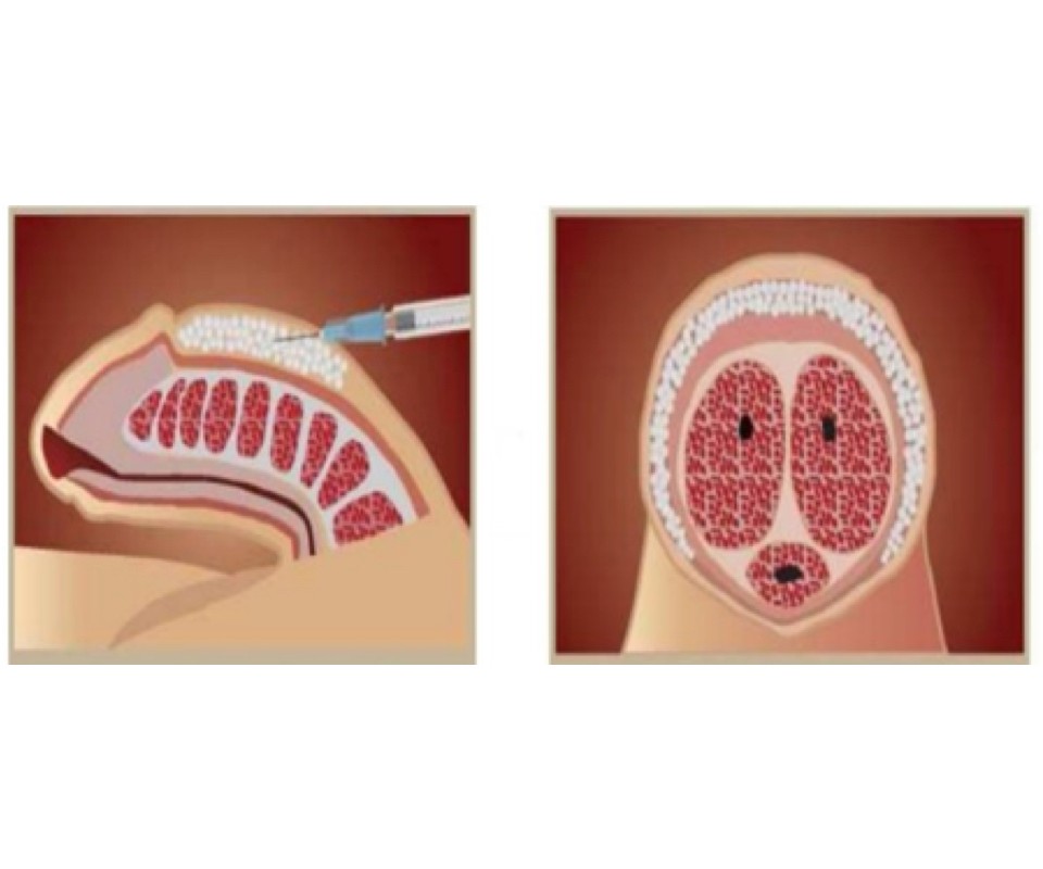 Povečanje obsega vključuje majhno liposukcijo na spodnjem delu trebuha ali stegen za pridobitev maščobe, čemur sledijo postopki priprave maščobnega tkiva ter ponovna uvedba z injekcijo vzdolž penisa. Običajno se obseg s tem poveča za 2-5 cm. Z vbrizgavanjem maščobe se pridobi obseg penisa tako v ohlapnem stanju kot v erekciji, s tem da je povečanje obsega v erekciji manjše zaradi raztezanja tkiva.
